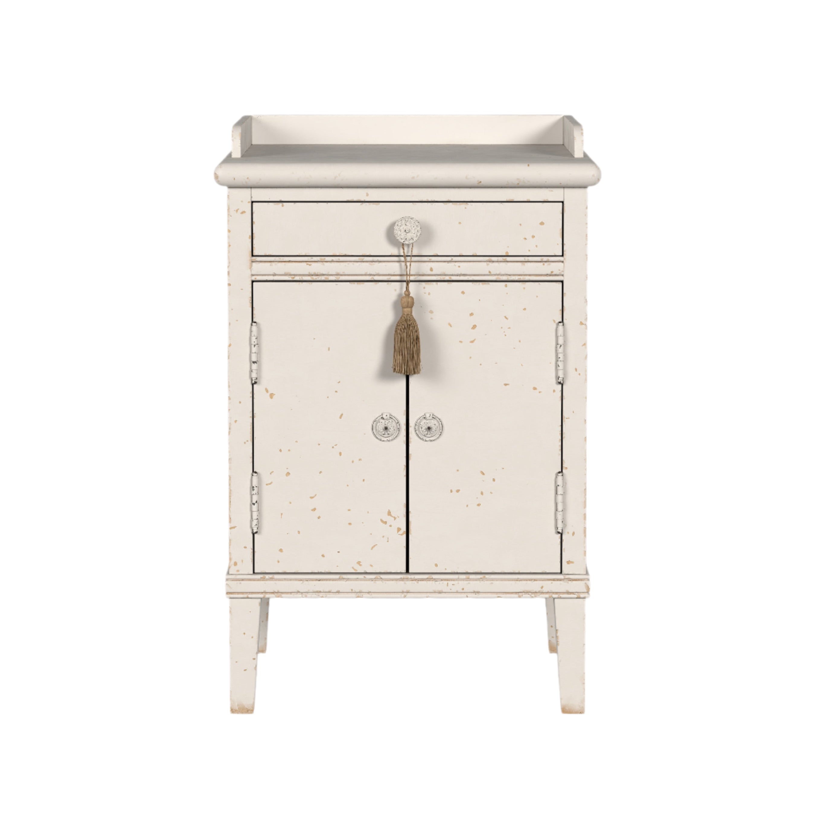 LAURA ASHLEY Annaside 2-Door 1-Drawer Solid Poplar Bedside Cabinet in Antique White, 74 x 48 cm