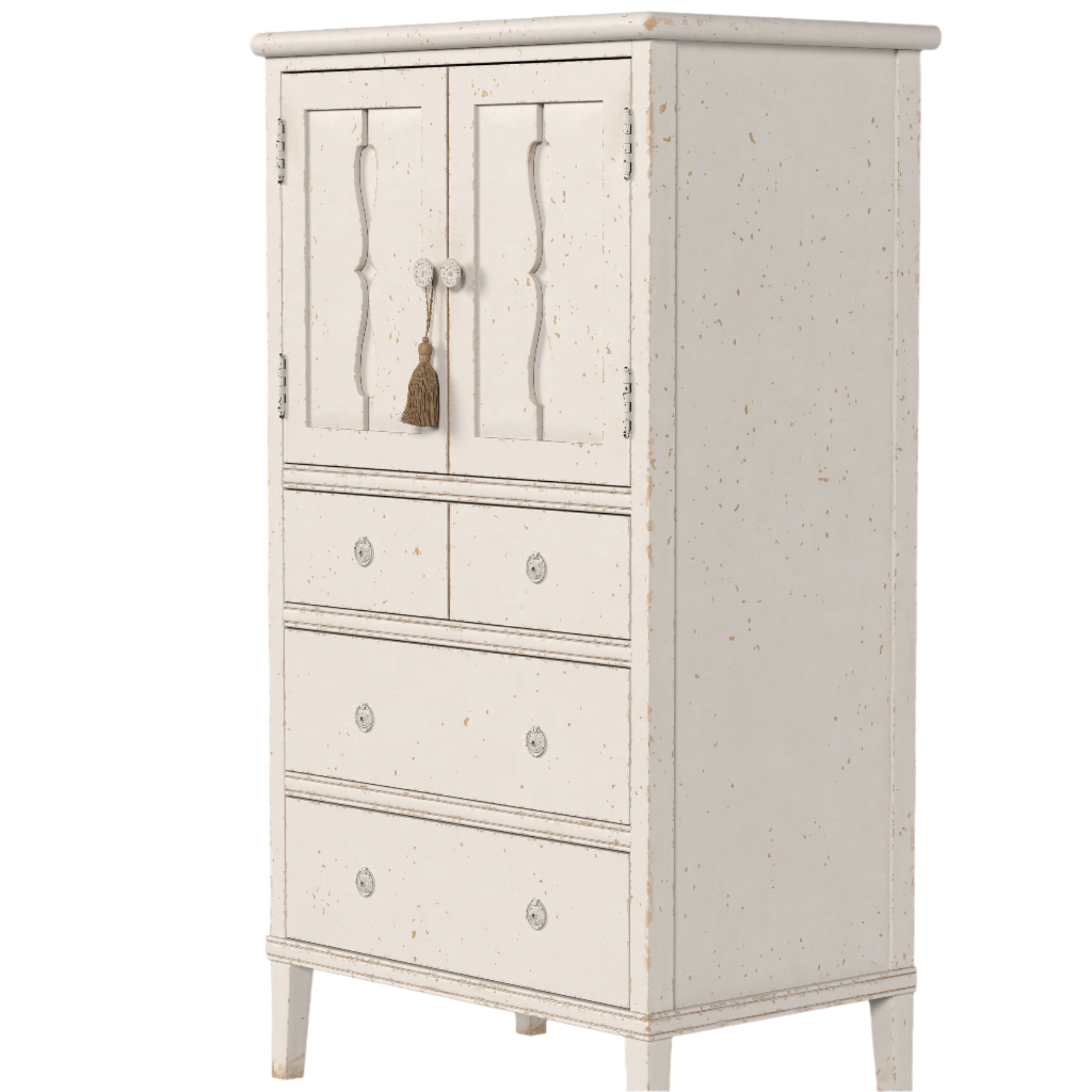 LAURA ASHLEY Annaside Solid Poplar 2-Door 4-Drawer Cabinet in Antique White, 130 x 72 cm -