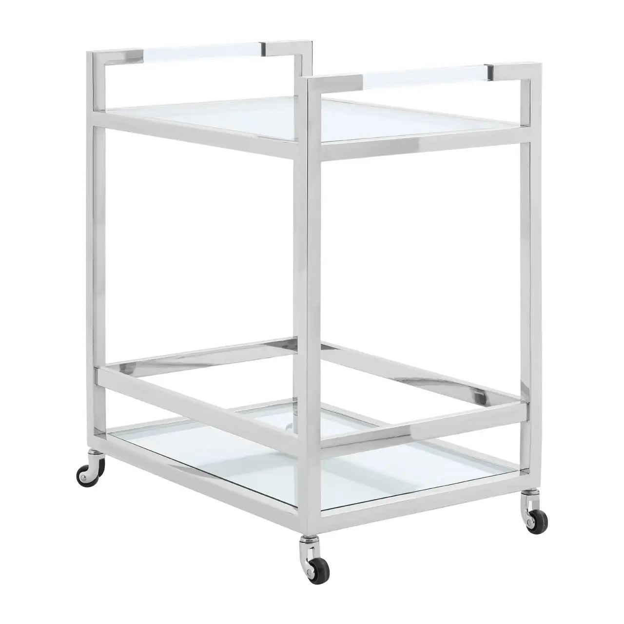 REGINA STUDIO Tulip | 2-Tiers Drink Trolley with Wheels | Silver Polished Stainless Steel | Tempered Glass -